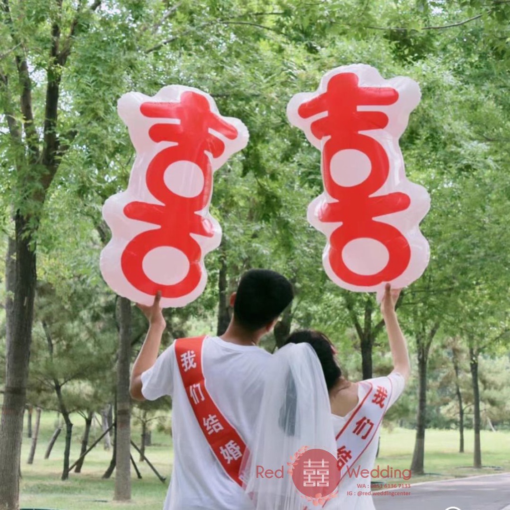 No SKU : Balon Besar Motif SHUANG XI Merah Pesta Estetik Foto Prewedding Dekorasi isi 2pcs