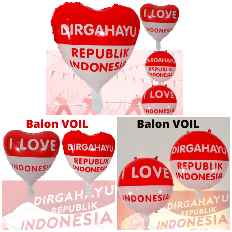 Detail Balon FOIL Hiasan Dekorasi 17 Agustus 17an HUT Dirgahayu RI Republik Indonesia Bulat Love Hati