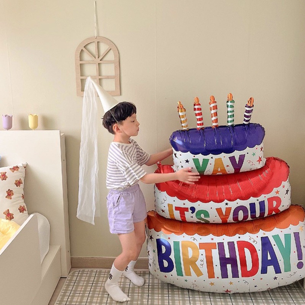Souvenir & Party Supplies > Balloons > Angka, Huruf & Bentuk > Balon Ulang Tahun Tiga Lapis Bentuk Kue Pelangi Dengan Lilin Untuk Dekorasi Pesta Ulang Tahun