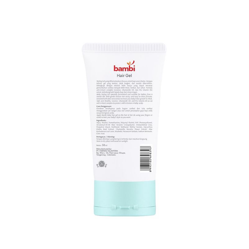 Bambi Baby Hair Gel 50ml (Tube) | Styling / Gel Rambut Bayi dan Anak