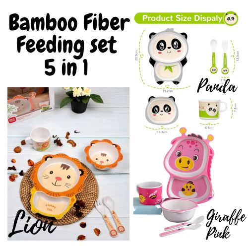 Detail Bamboo Fiber Feeding Set | Perlengkapan Makan Anak Lucu | Peralatan Makan Bayi