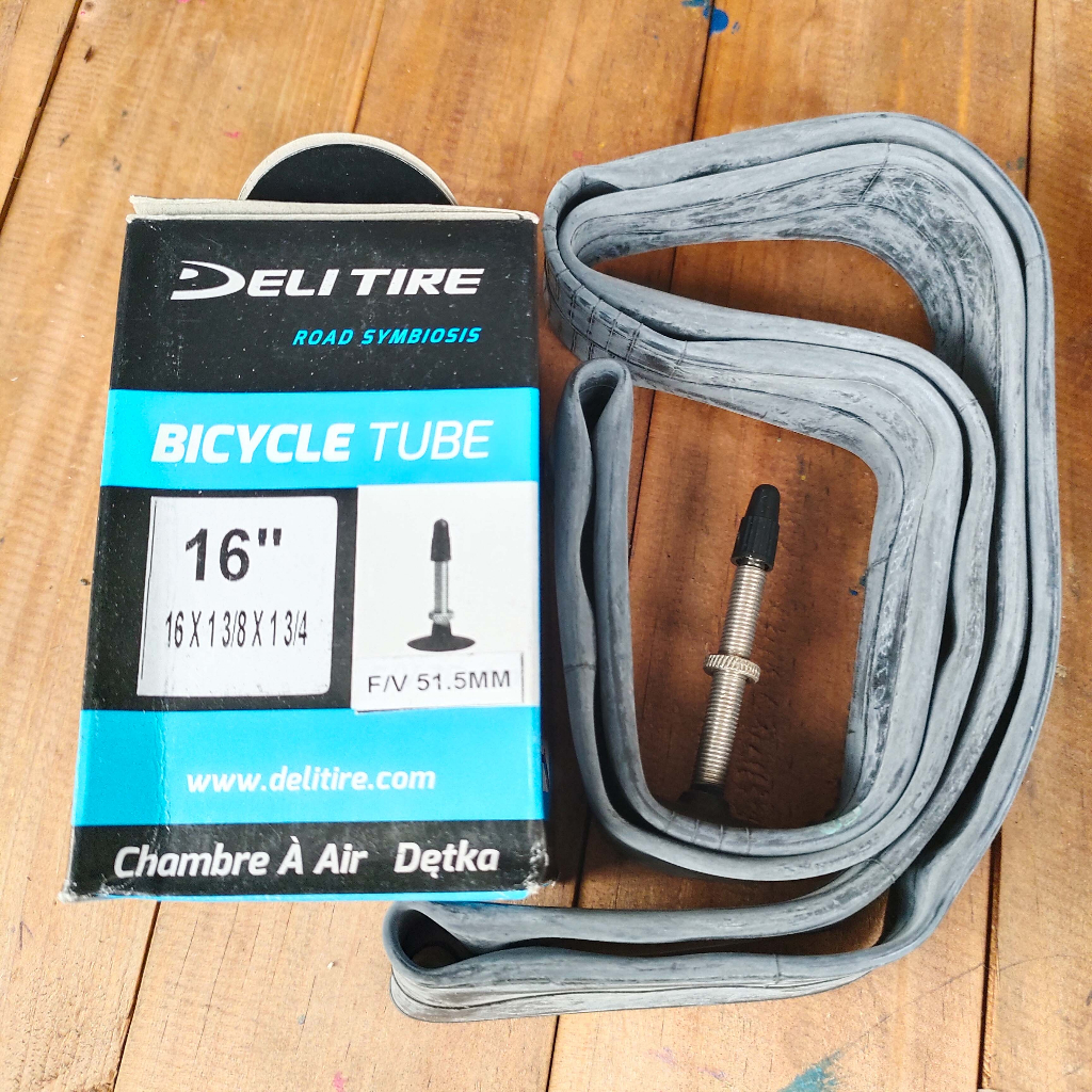 - Merk Swallow (Deli Tire) - Ukuran 16 x 1-3/8 sampai 1-3/4 - Tipe penti presta atau pentil kecil - Panjang pentil 51.5 mm - Cocok untuk velg tinggi - Harga 1 ban dalam