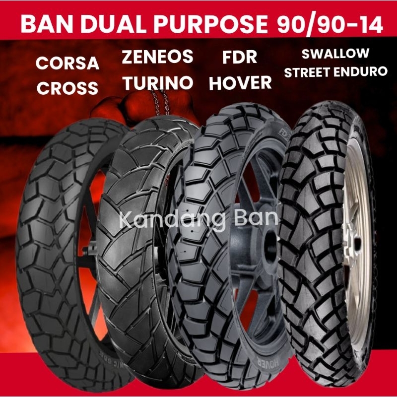 Otomotif > Suku Cadang Motor > Ban Motor & Aksesoris > BAN TUBLES MATIC DUAL PURPOSE, BAN BELAKANG UKURAN 90/90-14 (CORSA PLATINUM CROSS) ( FDR ULTIMATE HOVER) (SWALLOW STREET ENDURO) (ZENEOS TURINO) UNTUK SEMUA MATIC