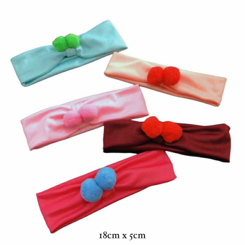 Bandana anak keunuan dengan model 2pom pom sehingga terlihat lucu saat digunakan.. berbahan kain halus dan lembut saat tidak sakit dikepala anak.. ukuran bandana 18cm X 5cm Kisaran untuk usia 3-15bulan..