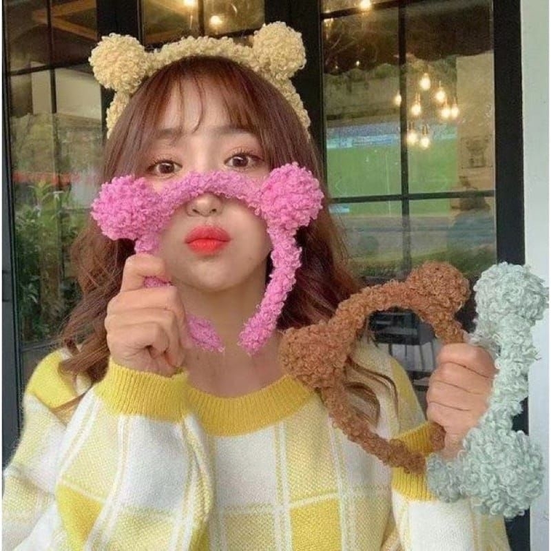 Detail Bando Karakter Telinga Beruang Bear Bulu Korea Kekinian Bandana Bando Handuk