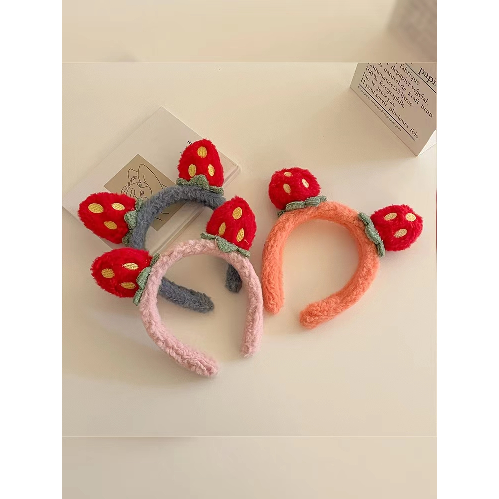 Aksesoris Fashion > Aksesoris Rambut > Bando & Bandana > Bando Lucu stroberi tiga dimensi yang lucu musim gugur dan musim dingin gadis baru ikat kepala manis ikat kepala mencuci wajah make-up ikat kepala hiasan kepala Korea HeadBand