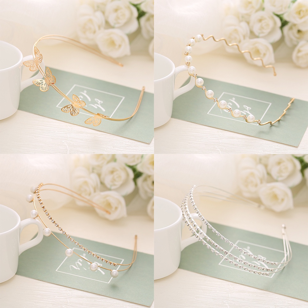 Aksesoris Fashion > Aksesoris Rambut > Bando & Bandana > Bando Mutiara Putih Elegan Untuk Wanita Fashion Emas Bunga Kupu-Kupu Hairband Aksesoris Rambut Pengantin Wanita
