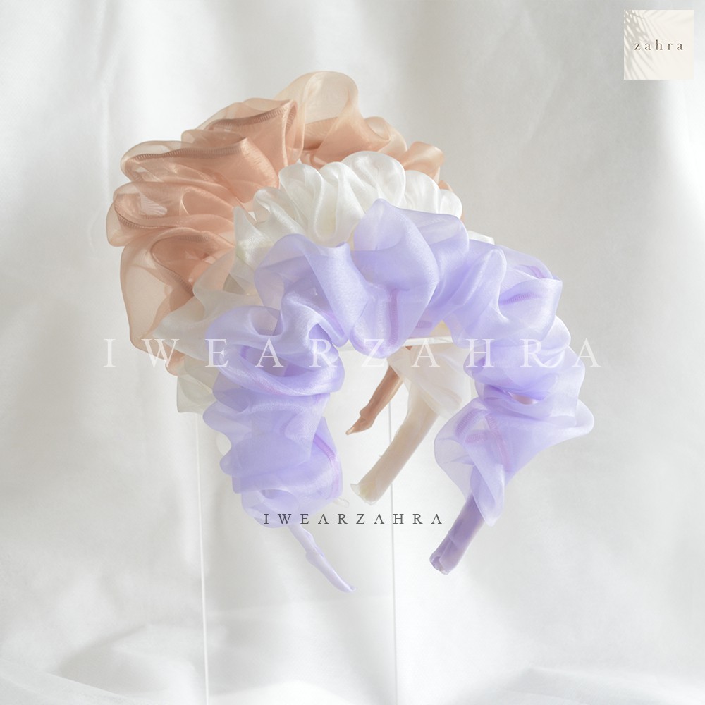 Detail BANDO ORGANZA - Headband Pastel Korea Bandana Puff Awan Kerut Murah Scrunchie Ikat Rambut Kuncir