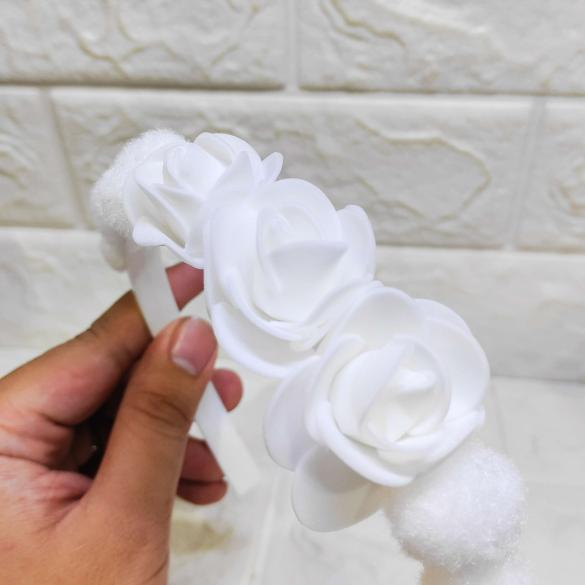 Detail Bando pom pom salju bunga foam aksesoris rambut bando cantik dan imut