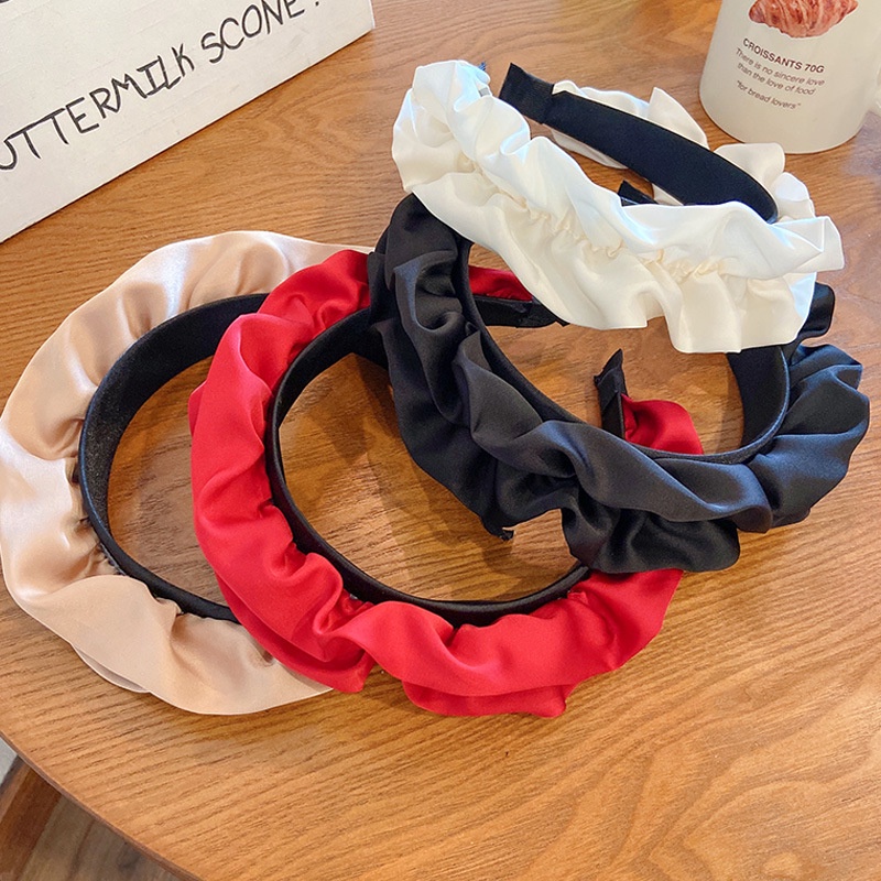 Detail Bando Scrunchie Wanita Korea Motif Polos Bandana Kerut Ruffle Silk Satin Aksesoris AK264