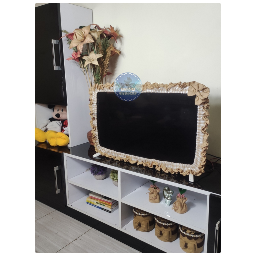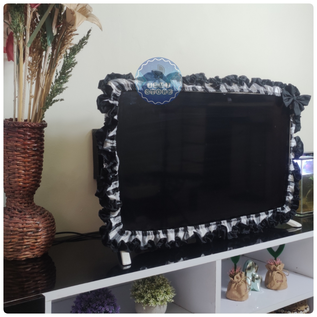 Detail BANDO/Tutup TV/LCD/Televisi Ruffle WARNA Motif Kotak-kotak Gingham Untuk TV 24 inch - 52 inch Bisa Custom Ukuran by Ismi Store