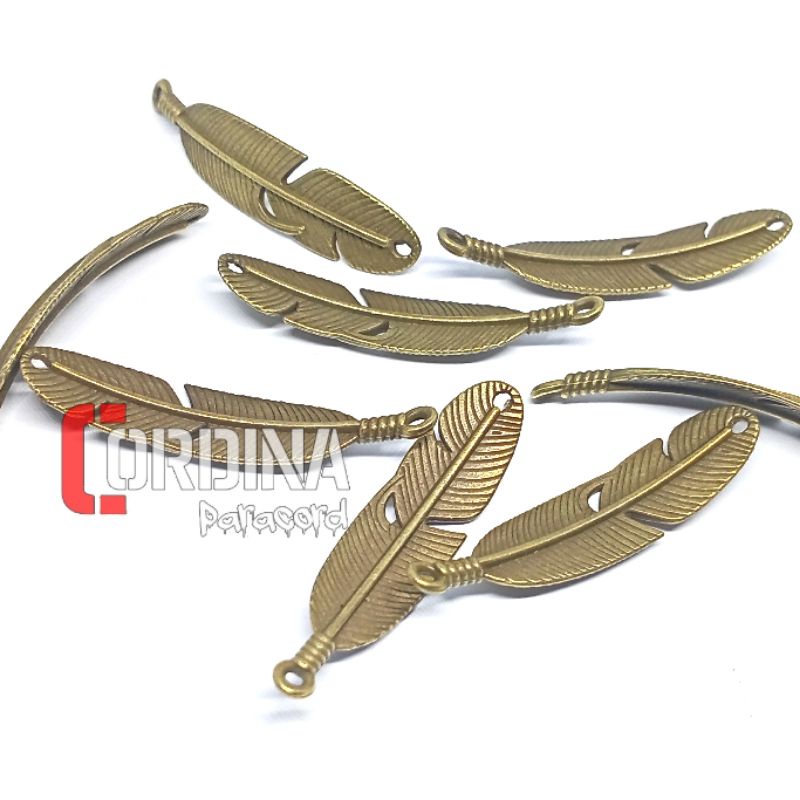 Charm Feather Daun Besar Aksesoris Gelang Kalung Paracord ukuran 46x6 mm Untuk pembelian minimal pada toko kami diusahakan minimal 7K bisa dicampur dengan produk yang lain.
