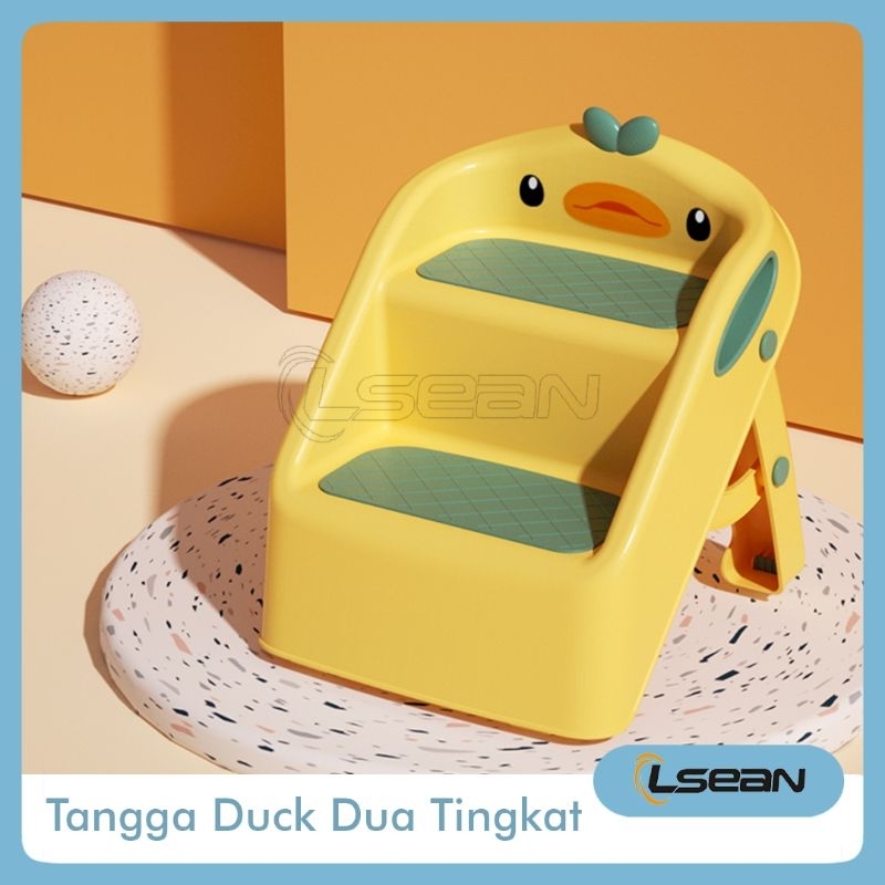 Detail BANGKU TANGGA MINI LUCU DUA TINGKAT PIJAKAN KAKI ANAK ANTI SLIP STEP STOOL MOTIF DUCK