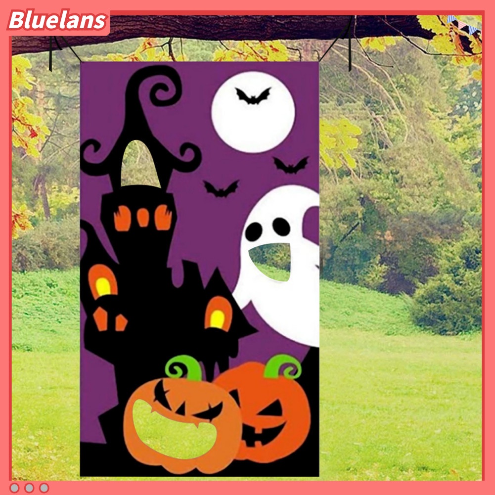 Banner Gantung Desain Labu Hantu Dengan 3 Bean Bag Untuk Pesta Halloween Anak
