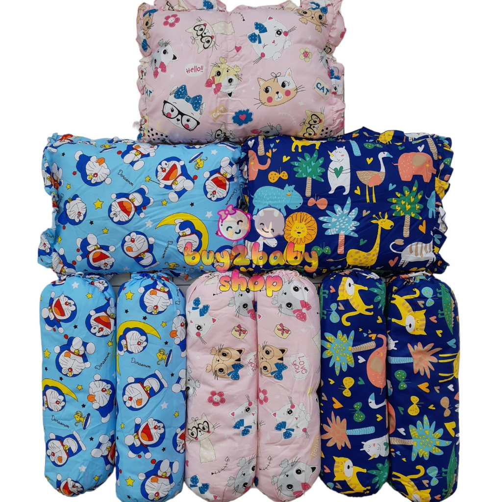 Bantal Guling bayi motif karakter warna warni lucu 1 set (1 Bantal 2 Guling)