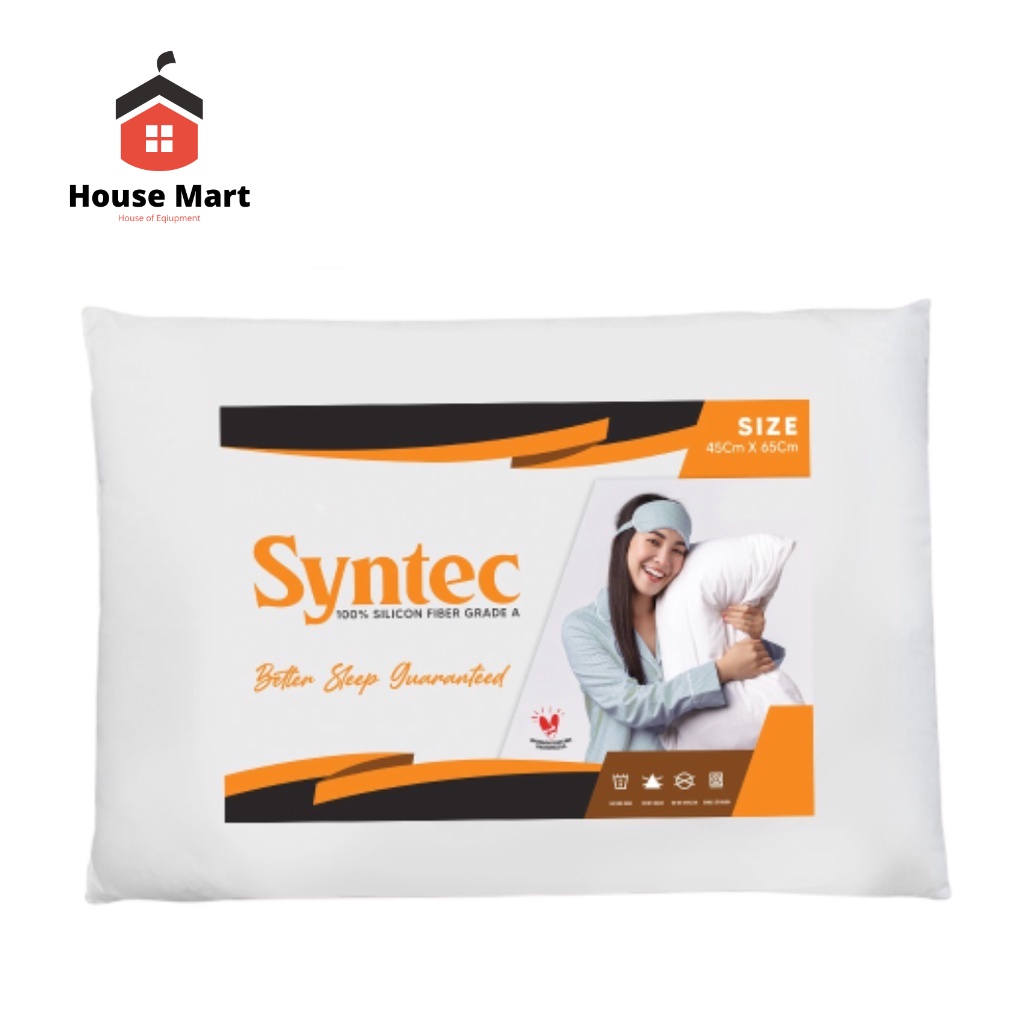 Spec : Type : Syntec 100% Goose Down Synthetic Blend Silicon Fiber Grade A Size : 45cm x 65cm Spesifikasi : Goose Down Synthetic Blend Hypoallergenic , Extra Resilent , Long Lasting Comfort, 100% Silicon Fiber Grade A Hypoallergenic, Extra Resilent , 100% Washable.