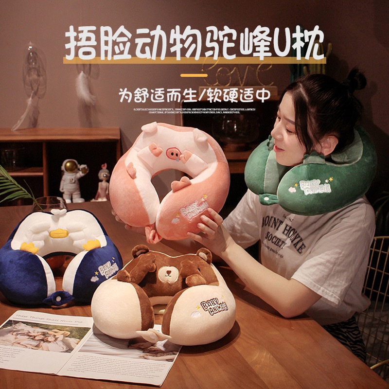 Detail Bantal Leher U-Shape Travel Neck Pillow Blue Kantor Istirahat Nyaman Memory Foam / Poliester Mobil Perjalanan Lucu Kartun Kucing Beruang Anjing Shiba Pinguin Biru Pink Putih Hadiah Ulang Tahun