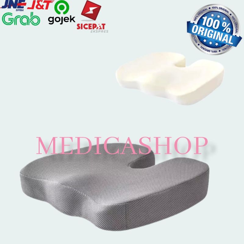 Bantal Duduk Memory Foam atau gel memiliki lapisan yang dapat membentuk pinggul, merenggangkan otot paha, dan melindungi tulang ekor.