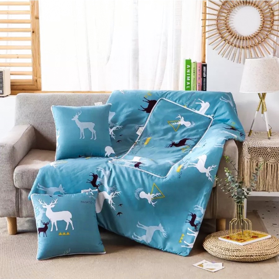 Sangat cocok dibawa berpergian. praktis dan mudah dibawa, tinggal lipat-lipat jadi ukuran kecil. Gak bakal kedinginan di jalan saat berpergian jauh Juga cocok untuk dipakai sehari-hari di rumah, habis dipakai selimutnya tinggal lipat-lipat jadi bantal, kamar tidur jadi tetap rapi, gak berserakan penuh selimut. Bantal selimut luarnya terbuat dari kain cotton halus, tidak berbulu. Dalamnya dari ultra fine hollow fiber (Dacron)