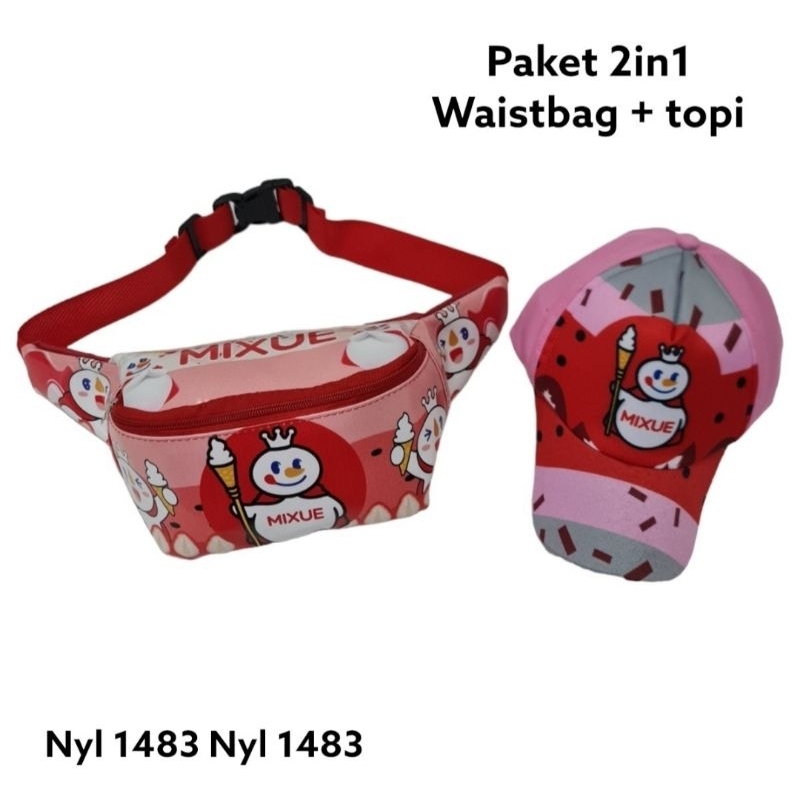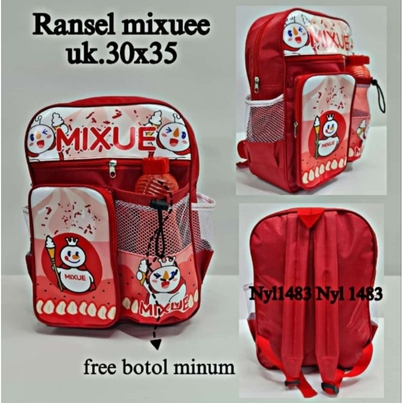 TAS ANAK PAKET 4IN1 1.Ransel Mixue 2.tumbler Mixue 3.Topi mixue printing 4. waistbag anak Mixue