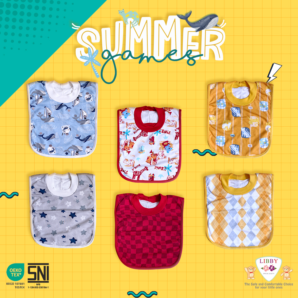 Ibu & Bayi > Peralatan & Aksesoris Makan > Celemek Bayi > BANYAK MOTIF1 PCS SLABER LIBBY MOTIF / SLABBER FULL PRINT SNI SUMMER GAMES / TREE HOUSE / ENCHANTED WILD / TALE OF PRAIRIE / SUNNY HILL / HELLO SUNSHINE / ME A DOWLAND / HAZY ZOO / ISLAND EXPLORER / FANTASIA / JURRASIC
