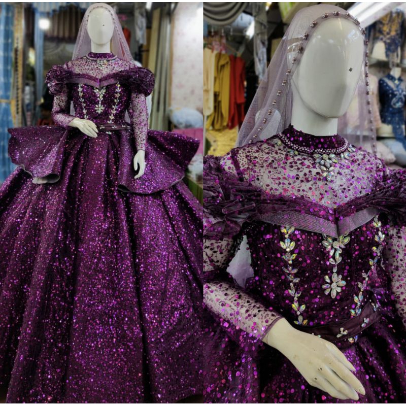 BAHAN GAUN TERBUAT DARI TILE AKAR TRIDI / CANDY SUGAR HIGHT QUALITY FULL PAYET MODEL BARBIE BELIMBING BUSA BEREKOR UKURAN ALL SIZE FIT TO L