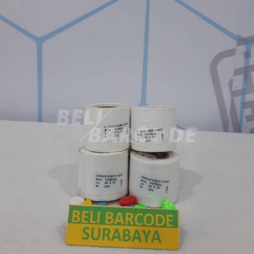 Informasi Produk : - Bahan : Thermal - Lebar : 40 mm - Tinggi : 30 mm - Baris : 1 Line - Isi : 200 pcs / roll - Core : 1 Inch (Kecil) - Perforasi / Ada Garis Sobek - Gap Kanan Kiri Atas Bawah - Harga diatas tercantum untuk 1 Roll label - Berat diatas tercantum untuk 1 Roll label