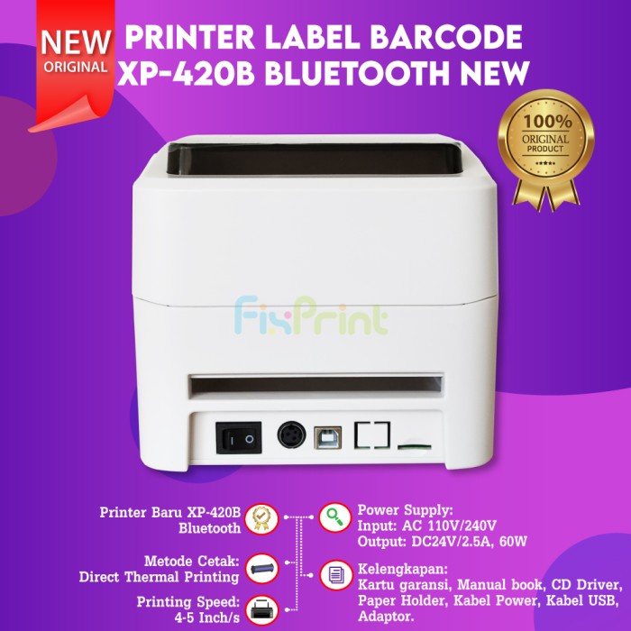 • New • Warna: Hitam • Metode Cetak : Direct Thermal • Dilengkapi: Kartu Garansi, Manual Book, CD Driver, Paper Holder, Kabel USB, Kabel power + Adaptor.