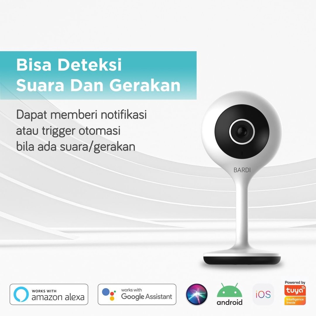 BARDI Smart IP Camera adalah kamera pintar 1080p yang dapat menyalurkan video berikut suara kepada smartphone dan suara dari Smartphone (Support IOS & Android OS).dan dapat memberikan notifikasi untuk motion sensor pada jam tertentu. Pada posisi gelap akan otomatis switch ke night vision. Kamera ini hanya perlu di colok ke listrik dan dapat di posisikan menggantung dari plafon maupun di dudukan pada meja, dengan orientasi video dalam aplikasi bisa di putar 180 derajat sesuai penempatan.