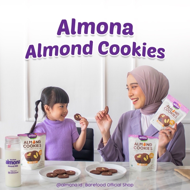 ALMONA Almond Cookies adalah cookies sehat yang terbuat dari: 1. California Almond yang tinggi antioksidan 2. Gandum pilihan yang kaya serat 3. Kacang hijau yang tinggi asam folat