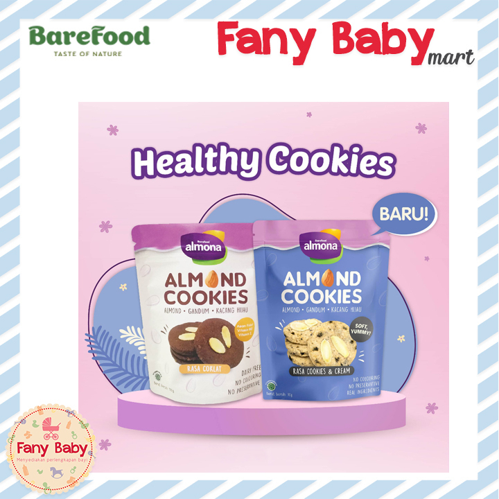 Apa keunggulan ALMONA Almond Cookies dibandingkan cookies sehat lain? 1. Dibuat dari 3 SUPER FOOD: almond, gandum, dan kacang hijau 2. Tinggi asam folat 3. Mengandung 9 vitamin tambahan, seperti vitamin C, E, D, B6, dan B12. 4. Tiddak mengandung produk sapi atau telur 5. Tidak mengandung pengawet ataupun pewarna sintetis.