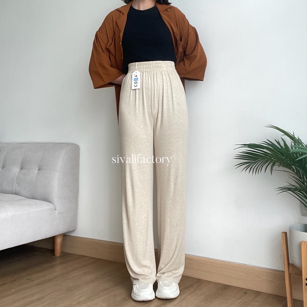 Detail ukuran: Lingkar pinggang 62-104cm Lingkar pinggul 92cm Lingkar paha 70cm Panjang celana 101cm Pisak 35cm Lebar bawah kulot 23cm