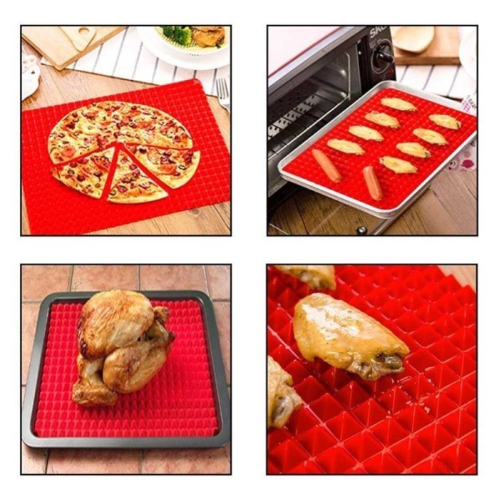 Keunggulan Silicone-Baking-Drainer-Mat: 1. Mudah dipotong sesuai ukuran 2. Dapat membuat masakan matang menjadi lebih rata 3. Mudah dicuci dan mudah saat menggunakan 4. Bisa merangkap sebagai alas pengering 5. Bisa juga dijadikan sebagai tatakan