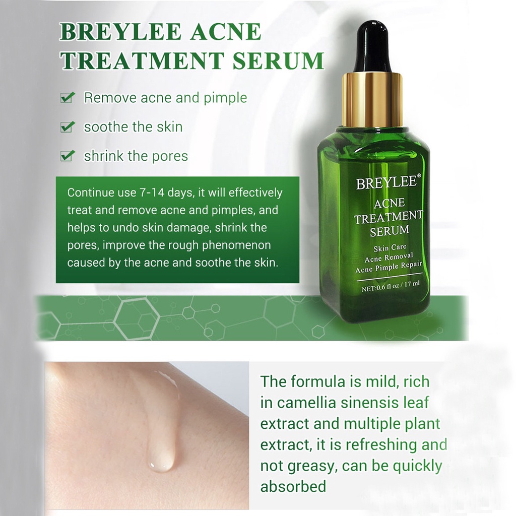 Acne Treatment Serum 17mL Dengan kandungan formula ringan ekstrak daun camellia sinensis dan beberapa ekstrak tumbuhan lainnya, berfungsi untuk menyegarkan, tidak berminyak, dan mudah diserap. Penggunaan 7-14 hari, secara efektif membantu mengobati jerawat meradang, menyamarkan noda bekas jerawat, membantu untuk memperbaiki kerusakan kulit serta mengecilkan pori-pori, dan memperbaiki tekstur tidak rata yang disebabkan oleh jerawat serta menenangkan kulit.