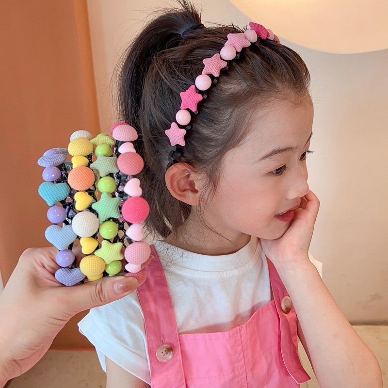 Detail Baru Anak-Anak Warna-Warni Cinta Rambut Hoop Mode Manis Karet Rambut Non slip Cangkul