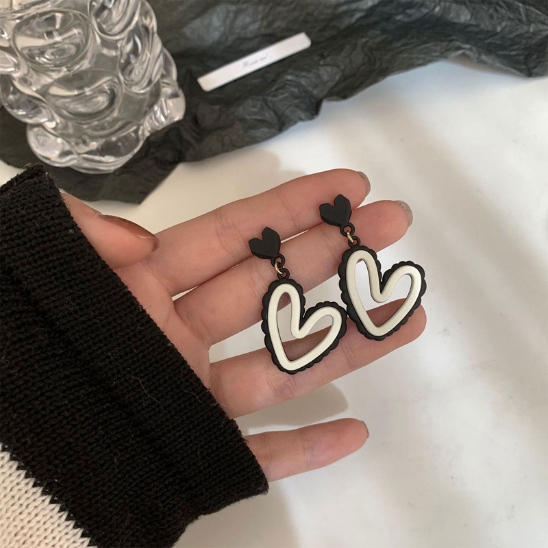 Aksesoris Fashion > Anting > Baru Korea Hitam Putih Berongga Cinta Drop Anting-Anting Manis Gadis Lucu Elegan Sederhana Perhiasan Untuk Wanita Tren Pesta Hadiah