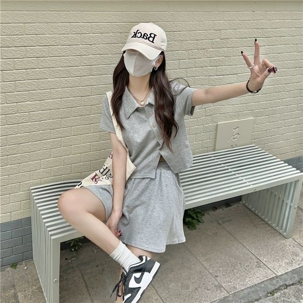 Detail Baru lengan pendek T-shirt kasual celana pendek olahraga setelan dua potong