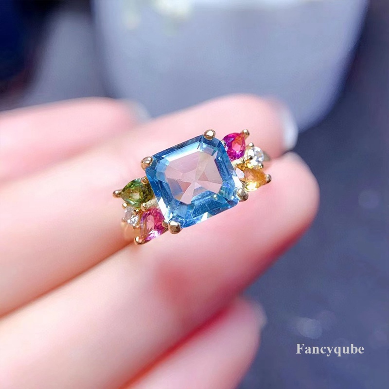 Aksesoris Fashion > Cincin > Baru Mewah Zamrud Cutting Santa Maria Buatan Aquamarine Laut Biru Topaz Cincin Untuk Wanita Warna Perak Perhiasan Pernikahan