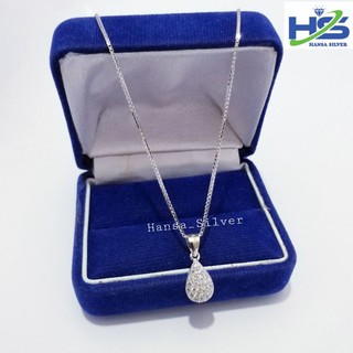 Kalung Perak Wanita Silver Asli 925 Lapis Emas Putih Liontin Oval - Kalung Wanita Anti Karat