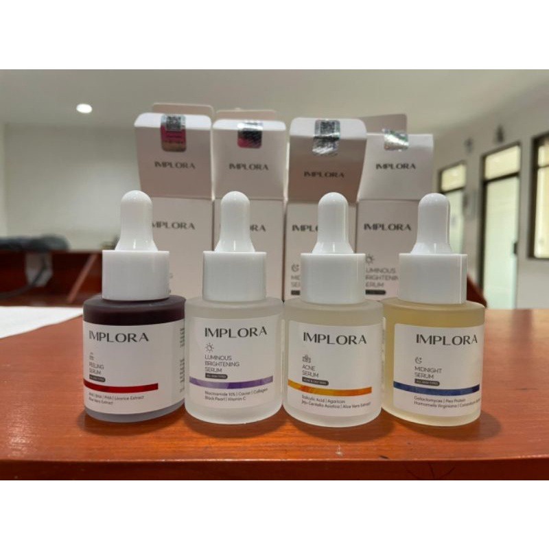 LUMINOUS BRIGHTENING SERUM Implora Luminous Brightening Serum mengandung Niacinamide 10% dan Kakadu Plum yang kandungan vitamin C nya 70 kali lebih banyak dari buah jeruk, yang dapat membantu mencerahkan, melembabkan, menyamarkan noda hitam serta menutrisi kulit. Dapatkan tampilan kulit yang sehat dan bersinar dengan menggunakan secara rutin. - Direkomendasikan untuk semua jenis kulit - Penggunaan pagi dan malam hari - Mengandung : Niacinamide 10%, Caviar Collagen, Black pearl, Vitamin C