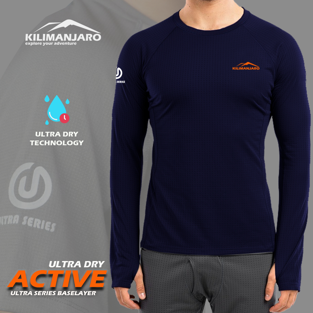 Baselayer KIlimanjaro Active dilengkapi dengan teknologi ultra dry yang berfungsi untuk menjaga badan kita tetap kering dari cairan keringat ataupun air hujan. Bagian hoodie telah di design untuk berbagai aktivitas yang banyak mengeluarkan keringat.