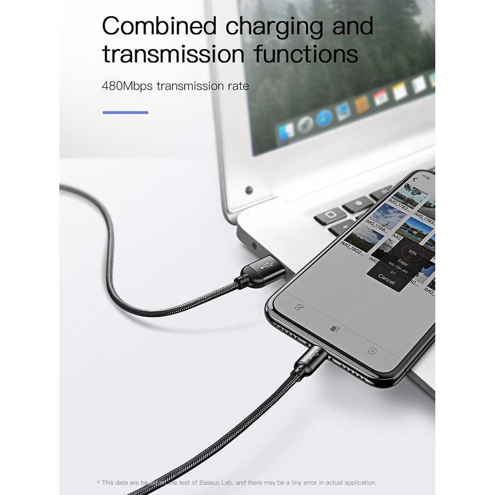 Detail Baseus 3 in 1 Kabel Charger Micro USB + Type C + Lightning Full Colour 35A 12M