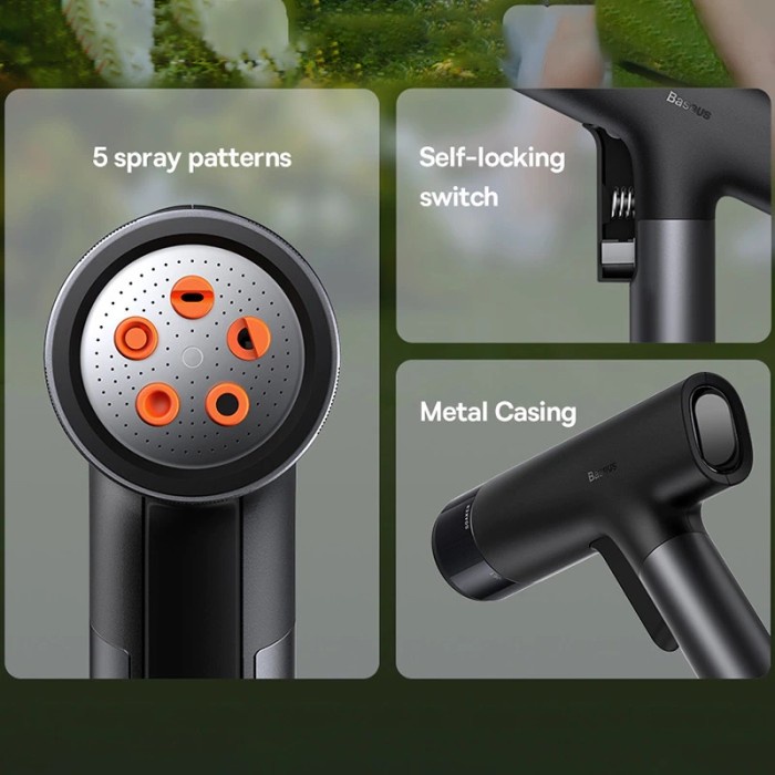 CPYY010001 6932172600150 Baseus GF4 Horticulture Watering Spray Nozzle Black CPYY010101 6932172600167 Baseus GF4 Horticulture Watering Spray Nozzle Black(15m telescopic water hose and universal faucet adapter included) CPYY010201 6932172600174 Baseus GF4 Horticulture Watering Spray Nozzle Black(30m telescopic water hose and universal faucet adapter included)