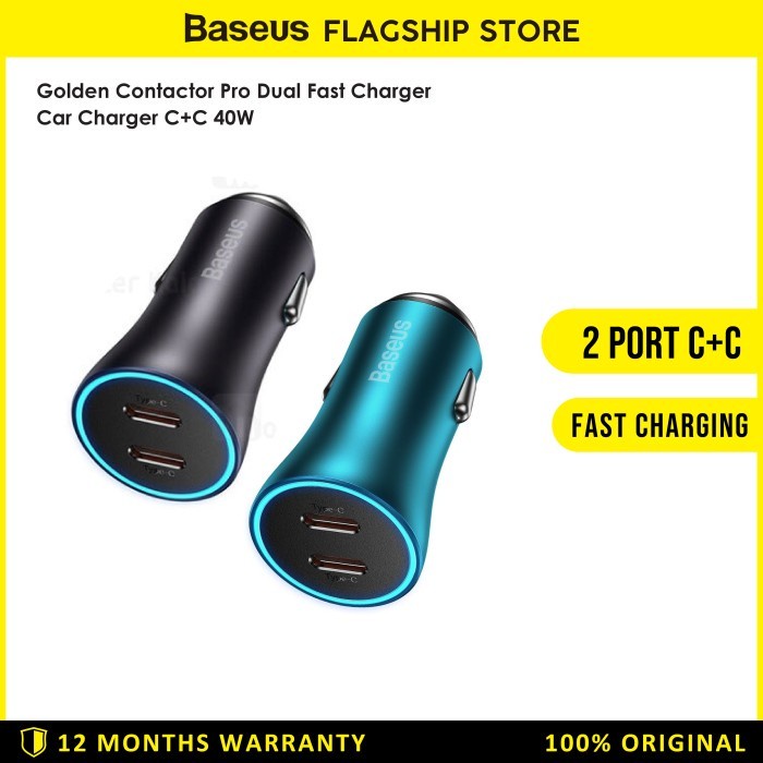 Otomotif > Aksesoris Interior Mobil > Pengisi Daya USB & Bluetooth Transmitter > Baseus Golden Contactor Pro Dual Fast Charger Car Charger C+C 40W CGJP - C+C 40W Blue