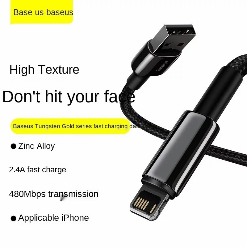 BASEUS kabel iPhone Tungsten Baseus Tungsten Gold Fast Charging 2.4A USB to Lightning Ready panjang 1 meter dan 2 meter Support Fast Charging & Transfer Data