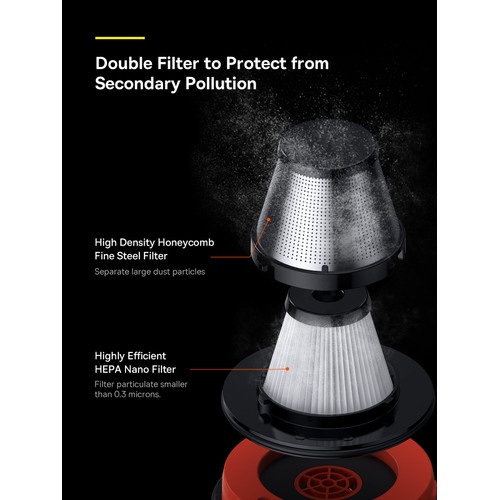 *) Garansi resmi 12 bulan *) Garansi langsung ganti baru jika rusak fungsi selama 2x24 jam sejak barang diterima dan transaksi belum diselesaikan *) Salah beli variant bisa diretur tukar tipe yang benar selama belum membuka kemasan *) Untuk klaim garansi, mohon menyertakan kemasan & screenshot invoice digital pembelian di ecommerce ================================================== Baseus A7 Portable Vacuum Cleaner Car Cordless Penghisap Debu Mobil Large Capacity Baseus A7 car vacuum equipped with 500ml dust cup, sufficient capacity for daily use. Designed with an ergonomic handle, allows holding the handheld vacuum with ease. Quick Vacuuming High-speed brushless motor delivers 2 levels of high suction power. Max to 8kPa suction power, cleaning up the mess instantly. whilst working silently to vacuum your car, carpet, furniture, and even keyboard fast and quietly. Easy MaintenanceSimply twist the dust cup counterclockwise to release the dust cup. Take out the filter, clean it with a brush, and pour out dirt of the dust cup. Wash the filter and dry it before the next time use. Best Chioce for Chritmas Baseus A7 small vacuum cleaner comes with a detachable brush to scrap and vacuum persistent dirt, a highly flexible hose to reach narrow corners, a brush to clean the filter, and a USB-C charging cable. Fast Charging Baseus handheld vacuum provides about 15~20 mins using after only 3.5 hours charging. The package also included USB charging cable, convenient to use with a standard charger.