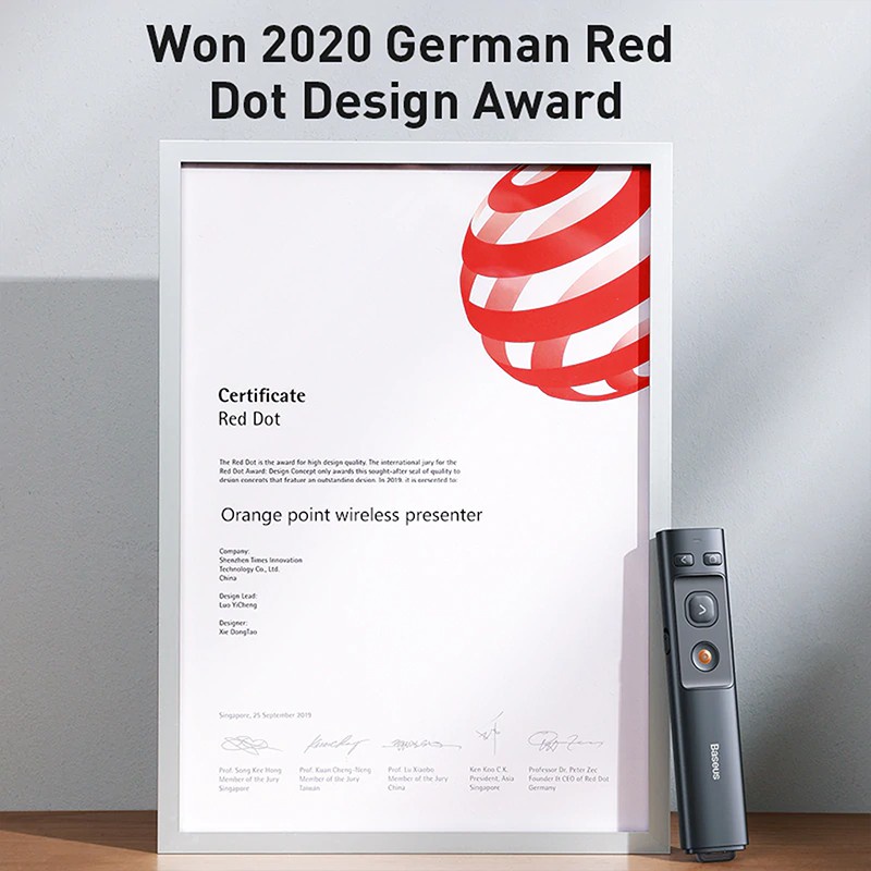 Nama Produk : Deskripsi Baseus Orange Dot Wireless Presenter (Red Laser) Warna : abu-abu Teknologi laser : 2.4G Hz Jarak laser : 100m Warna laser : merah Sistem yang didukung: Windows/Mac