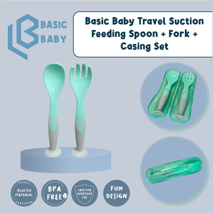 Basic Baby - Travel Suction Feeding Spoon Fork Set with CaseBasic Baby - Travel Suction Feeding Spoon Fork Set with CaseBasic Baby - Travel Suction Feeding Spoon Fork Set with Case