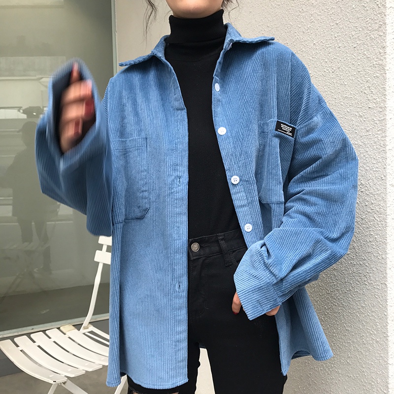 Detail Basic Corduroy Outer Blus fashion kemeja lengan panjang longgar setengah panjang gaya Korea baru