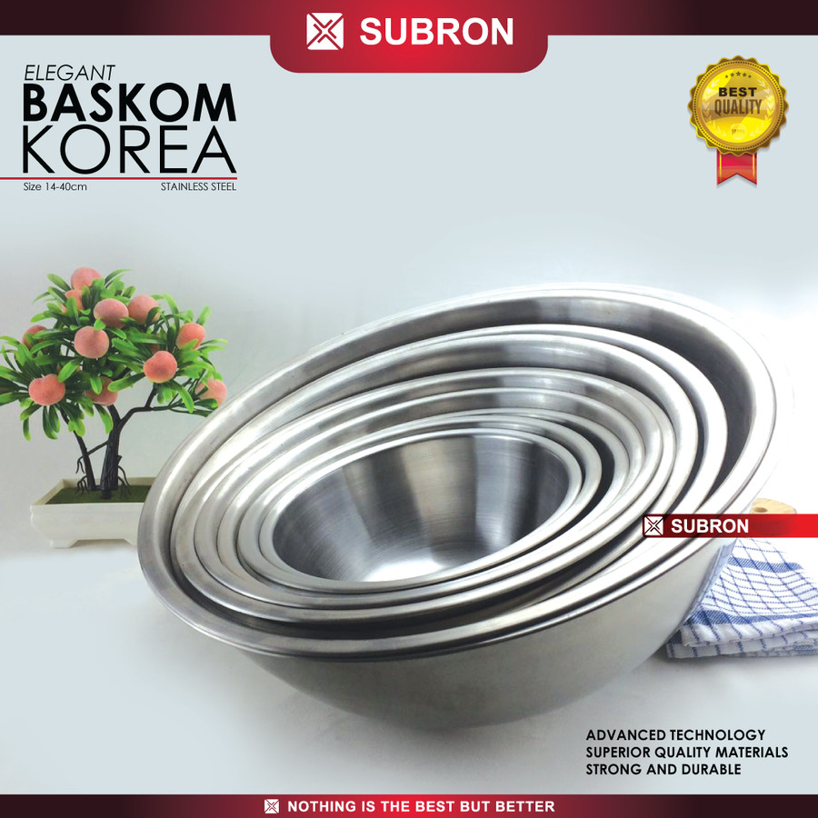 SUBRON Baskom Korea 22cm 24cm Tinggi Tebal Wadah Multifungsi Stainless Steel